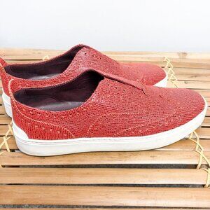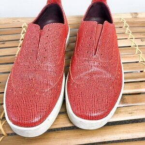 Rag and Bone Meli Textured Red Leather Sneakers Red 37 1/2