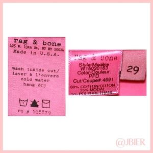 Rag and Bone Pink Jeans feature a low-rise fit, five pockets, and zipper and button closure. Style with our Free People White Button-Up Blouse and our Dolce Vita Esme Sandals for a classy look with a pop of color. Perfect condition.