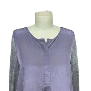 Rag and Bone Purple Silk Front Henley Knit Sweater Gray Size XS