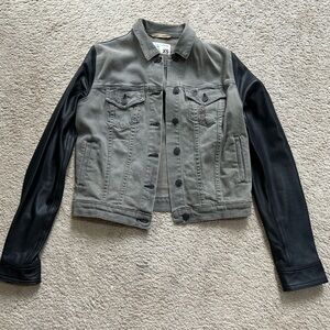 Rag and Bone Store Exclusive Grey Denim Black Leather Sleeve Jacket Women’s XS