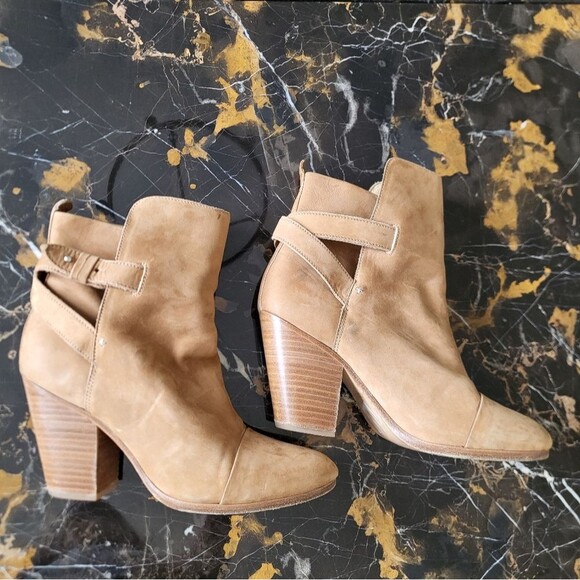 Rag and Bone Tan Leather Kinsey Booties Size 39.5 Made in Italy