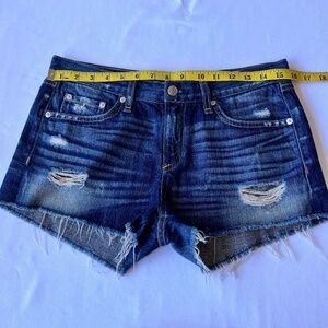 * Features: traditional 5 pocket style, cut-off, distressed, frayed, raw hem, 100% cotton, whiskers