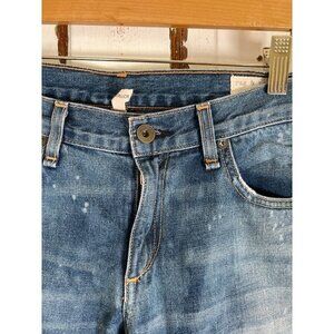 Rag and Bone Women Size 28 Medium Wash Denim Boyfriend Jean Distressed Bleach Splashed Spots