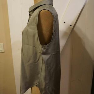 A super silky soft button up blouse by Rag & Bone. One button is missing but can be easily replaced with the very top one or with a replacement button, very easy fix. Other than that in perfect shape. A really great size and sage color. I love this top!