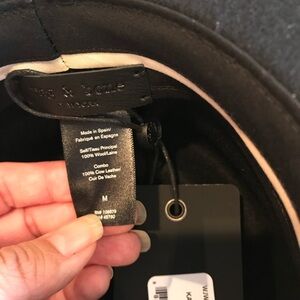 NWT-Rag and Bone wool fedora hat. Features feather embroidery and knotted leather strap. 100% wool. Size M.