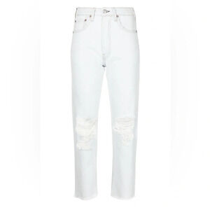 Rag and Bone size 23 distressed super light wash jeans in excellent condition high rise straight