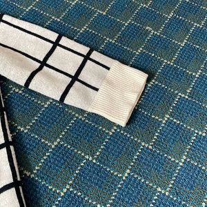 Super cute tunic/mini dress. Base is oatmeal:grey with black windowpane. Good condition. Warm abs comfy with adorable funnel neck.