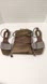 These are brown on the bottoms and tops are a light purple with a gray hue