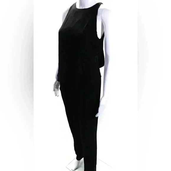Rag and bone day 2 nite stylish black sleeveless leather trim jumpsuit romper 6
