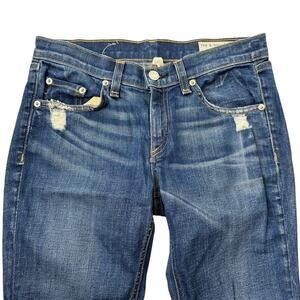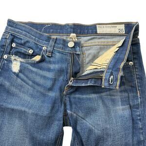 Rag and bone skinny jeans mid rise distressed ripped busted knee women’s 26