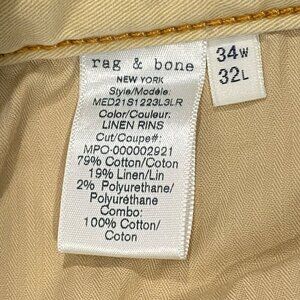 Rag & bone Fit 2 Linen Rinse button fly jeans Men’s 34 W X 32 L designer
