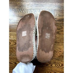 Logan platform slide updated for summer in woven, recycled materials. Ergonomic memory foam footbed so you can get where you're going comfortably.