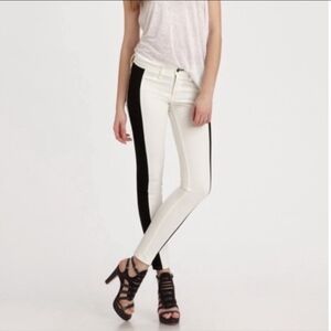 Rag & bone Mid-Rise Skinny Jeans in white with black tuxedo stripe Size 25