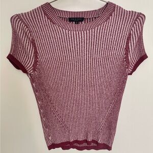 Chic ribbed knit top with short sleeves from rag and bone in a raspberry pink color. Perfect for layering or standalone wear. Like new condition.
