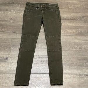Rag & bone Ridley Moto Skinny Jeans in Wax Dark Olive Size 26 Zipper Pockets.