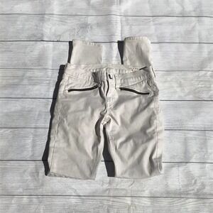 rag and bone Ridley moth off white skinny jeans. Black zipper pockets. Knee patch styling. Not a pure white color, more off white or creamy. Zippered front pockets. Seam detailing at knees. Color is wax winter white.