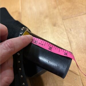 Beautiful boots with high block heel in black suede with studded design. Pretty good condition. Size 38 or 7.5-8