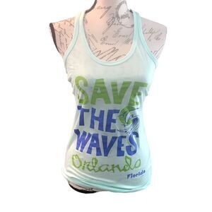 Rag wear size medium tank top razorback green and blue so save the waves Florida Orlando 52% cotton 28% viscose 20% polyester P 124 B 32