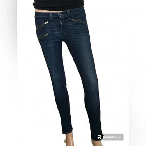 Rag&Bone Moto Style Ankle Zip Skinny Stretch Low Rise Dark Blue Denim Jeans