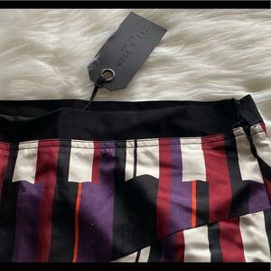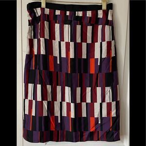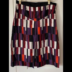 This beautiful Rag & Bone midi skirt is made out of a silk blend material and comes in a multi color / graphic pattern. Lined