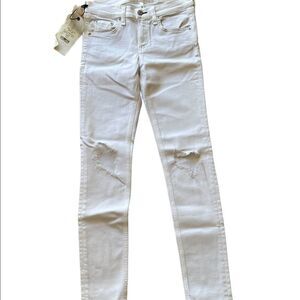 Rag & Bone's classic skinny capri style that features a bright white wash and holes at the knees.