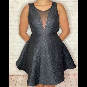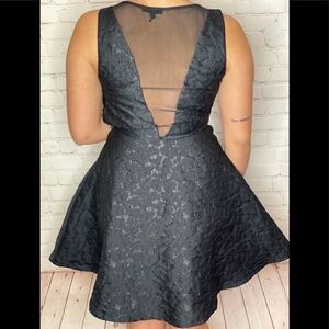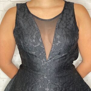 Deep V with sheer meshing , fabric is a floral brocade. Measurements are flat and approximate. Smoke free home