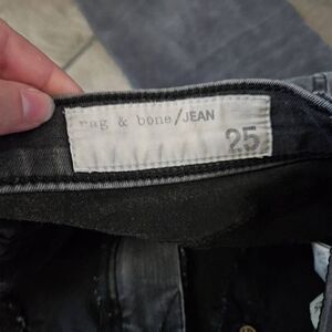 This is a pair of black (cotswald) capri Length jeans by Rag & Bone. The style name is Zipper Capri. At each ankle are zippers as shown in the photos. Note the pockets on each hip are decorative only.