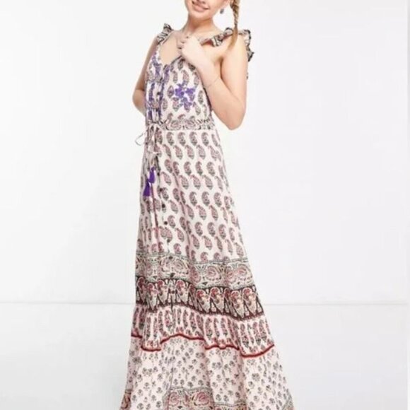 Raga / Anthropology Blooming Trails ruffle strap printed maxi dress in multi NWT