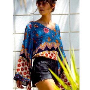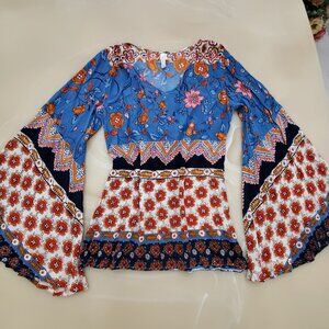 Raga Anthropology Sun Daze Floral Bohemian Bell Long Sleeve Blouse Size Small
