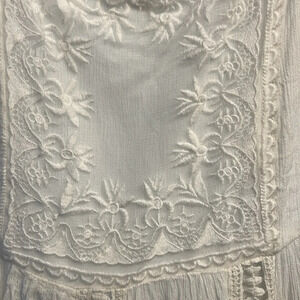 Freaking gorgeous dress that reminds me of a fairy tale where you’re the star of the show. Layers, embroidery, and lace up sides add the perfect detailing. Labeled XS but fits like S. 36” long. Bust adjusts based on laced side ties. Viscose. Wore one afternoon.