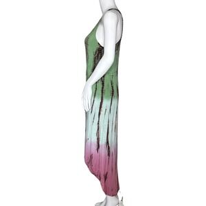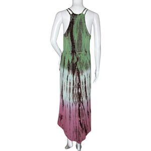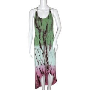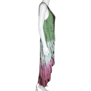 Raga Dress Womens Small Green Brown Tie Dye Halter Back Hi Low Bohemian Hippie
