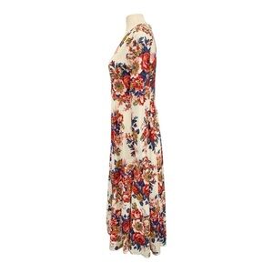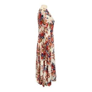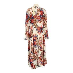 Features: 100% viscose fabric in an all over floral print. Scoop neckline. Long sleeves. Maxi length. Button back detail. Pull over.