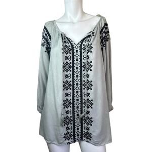 Raga Gray & Black Embroidered Boho Peasant Blouse with Tassels sz S