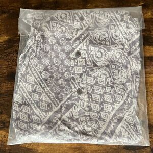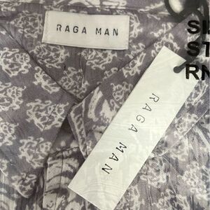 Raga Man Button Down Short Sleeve, Straight Hem Bohemian Print Shirt in Gray and Cream Print. Size Large. Brand new, still sealed in manufacturer’s original packaging. New with tags!