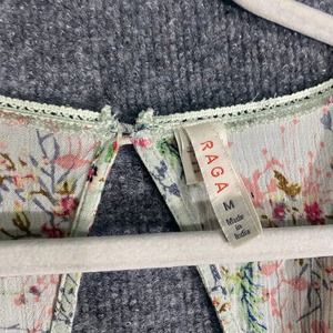 Raga Mini Dress Medium Green Pink Floral Print Secret Escape Long Sleeve
