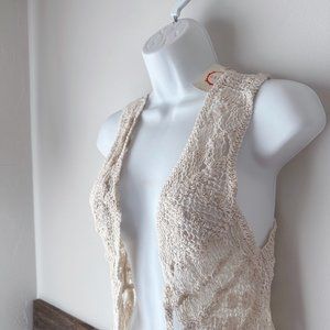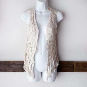 Raga Natural Crocheted Vest Anthropologie NWT Fringe S Bohemian