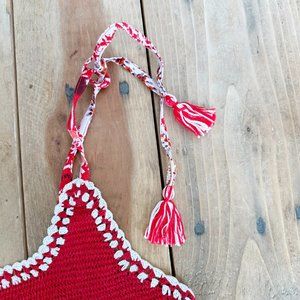 Raga Red Crocheted Halter Anthropologie M NWT