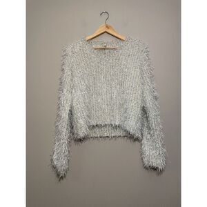 Raga Shimmer Fuzzy Holiday Sweater Women’s Small Tinsel V-Neck 25” pit to pit 21” long