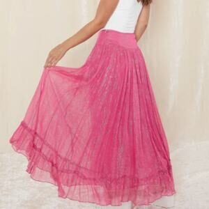 Raga Size S Zella Lurex Maxi Skirt NWT Boho Indie Pink Silver Metallic Gypsy New