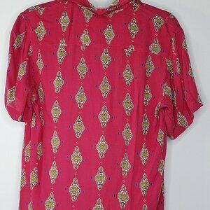 Raga Small Alice Button Down Short Sleeve Boyfriend Medallion Shirt Viscose