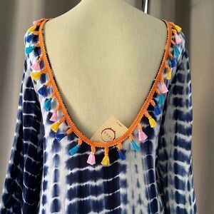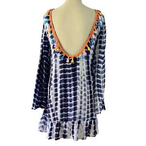 Raga Tie Dye Scoop Back Tassel Tunic Cover Up S
