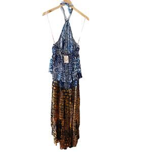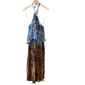 Raga Until Sunrise Ikat Deep Dye Halter Crochet Detail Dress Size Medium NWT