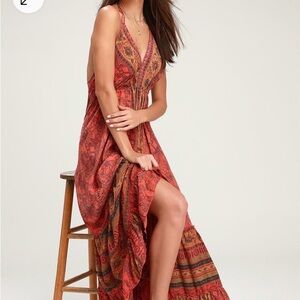 This is a new without tags NWOT Raga halter maxi. In excellent new condition. The style is called passion struck halter maxi. The colors are primarily a pink, gold and green. It is a long flowing comfortable dress made of polyester. It has a very open, beautiful back that does go down pretty low so likely best not for a smaller stature. Let me know if you have any questions and thank you so much for considering this beautiful new without tags dress. 🌷