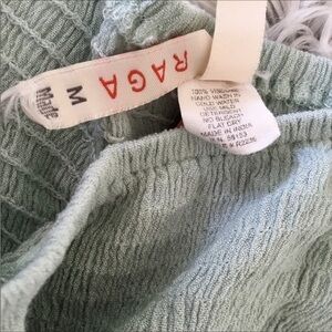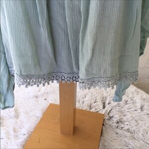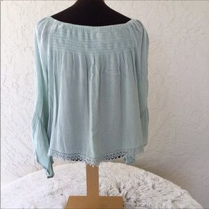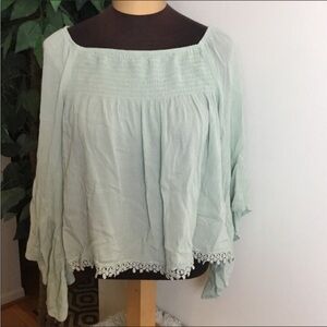 Raga blouse Womans medium bell sleeve crinkle material light green lace …