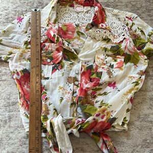 Raga pearl snap tie up blouse size small Floral Lace Button-Up Blouse