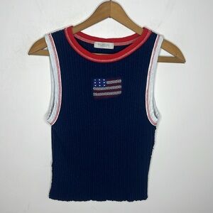 Ragabond Studio x Free People Farrah Flag Ribbed Tank Navy Blue Ringer Crop Top