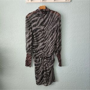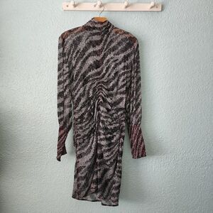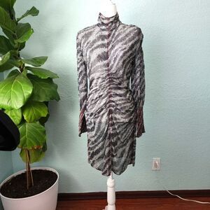 Rag and bone silk turtleneck long sleeve rushed bottom back zipper mini dress