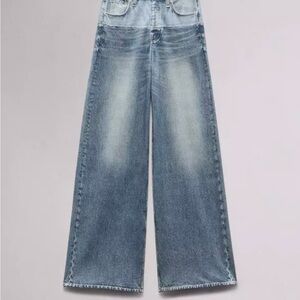 Stylish and comfortable, these blue wide-leg jeans are perfect for any casual outing. Pair them with your favorite top for a chic look. Please keep in mind that these are not a jean material but more like a sweatpants. They do run long and big, I’m 5’10 and these still hit the ground. I love these but I need a size smaller, super comfortable and lightweight