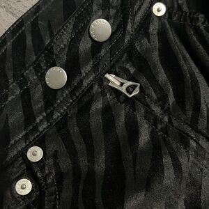 Flaunting an allover zebra-print, these fahion-forward skinny jeans fall to an on-trend ankle silhouette.