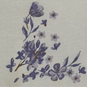 Romantic meets relaxed in this Ragdoll Los Angeles floral tee. Made of soft 100% cotton in an ivory base with scattered lavender flowers, it features puffed balloon sleeves and a roomy cut. Style it tucked or loose—perfect for easy days with a polished twist.